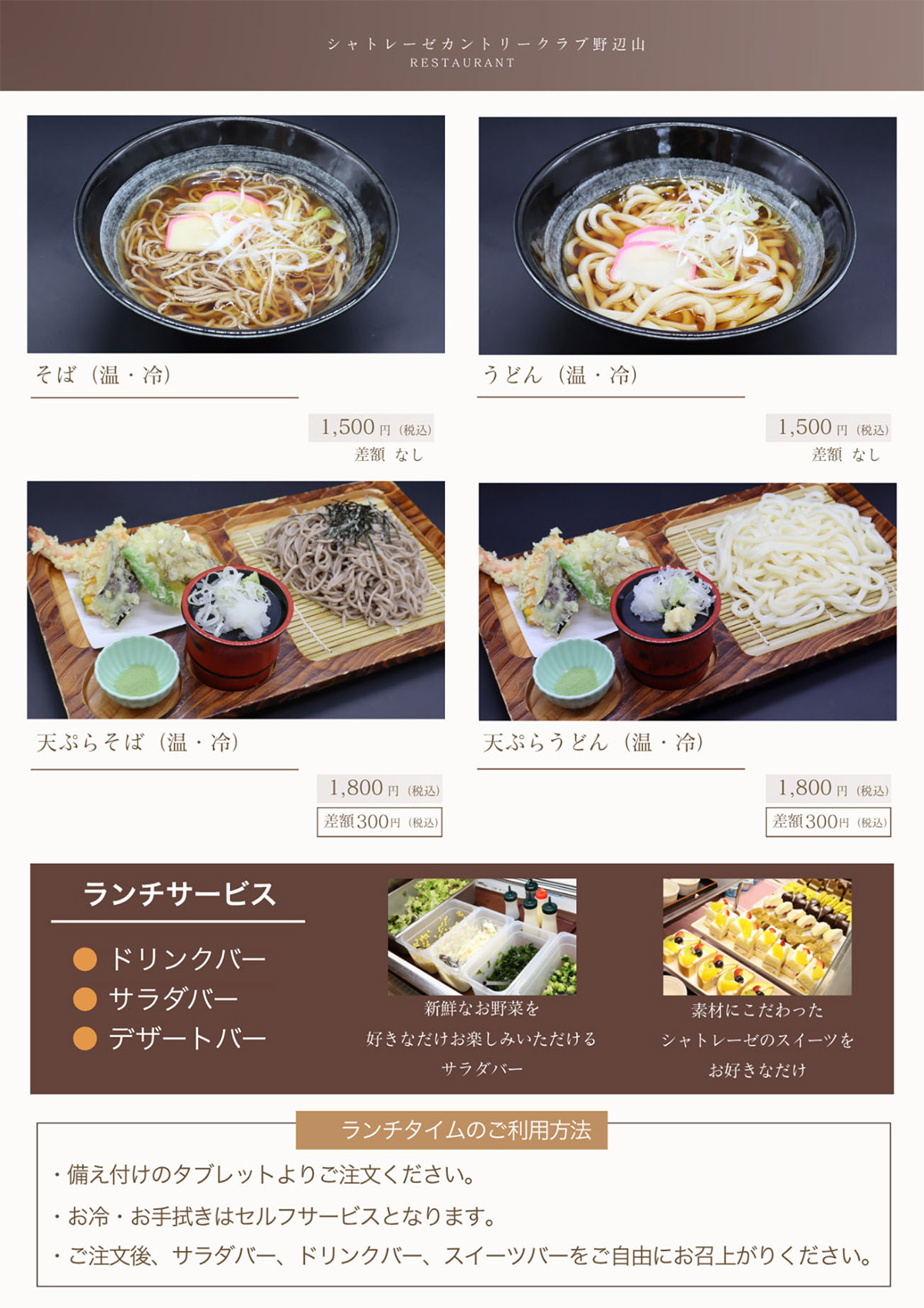 |  | お食事のみでもご利用頂けます。 朝食 :9:00ラストオーダー/9:30終了 ランチ:10:00~13:00ラストオーダー/14:00終了